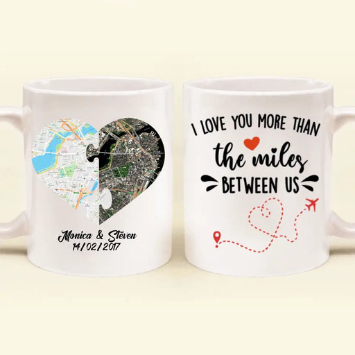 View full detailsPersonalized Long Distance Relationship Coffee Mug - I Love You More Than The Miles Between Us