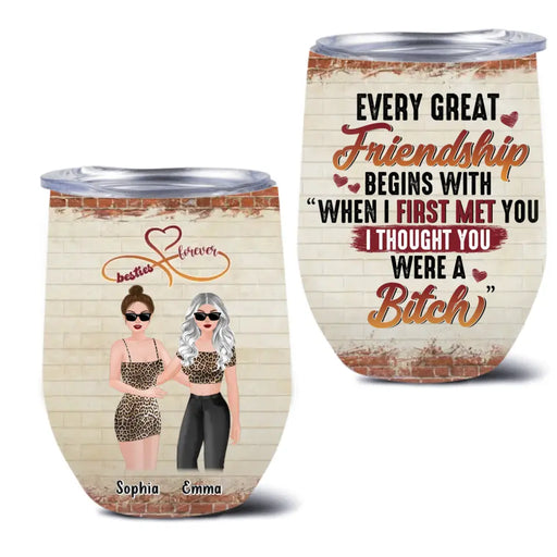 View full detailsPersonalized Besties Wine Tumbler - Gift Idea For Besties/Friends/Sisters - Every Great Friendship Begins With When I First Met You I Thought You Were A Bitch