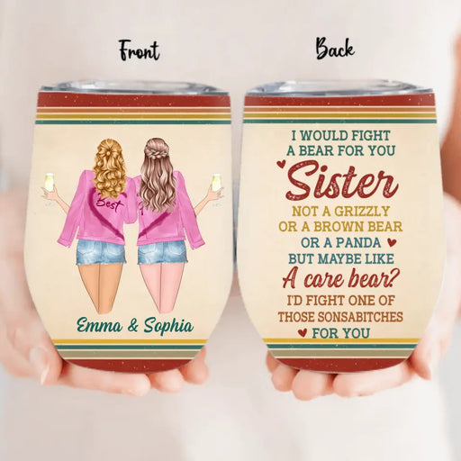 View full detailsPersonalized Besties/Sisters Wine Tumbler - Gifts Idea for Besties/Friends/Sisters - I Would Fight A Bear For You Sister
