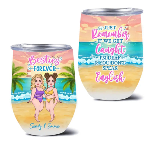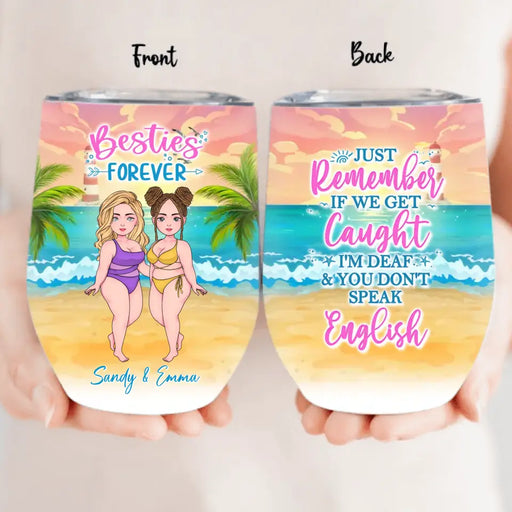 View full detailsPersonalized Besties Wine Tumbler - Up to 4 Women - Gift Idea For Best Friends/Besties/Sisters - Just Remember If We Get Caught I'm Deaf & You Don't Speak English