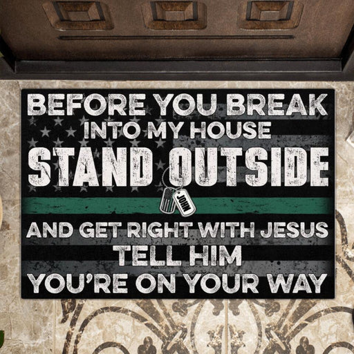 View full detailsCustom Personalized Rectangle Doormat - Best Gift Idea For House - Before You Break Into My House Stand Outside And Get Right With Jesus
