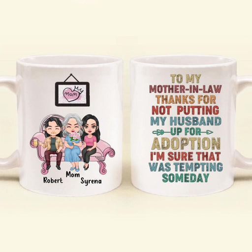 View full detailsPersonalized Mother Mug - Mom With Up to 2 Children - Gift Idea For Mother's Day - To My Mother-In-Law Thank For Not Putting My Husband Up For Adoption