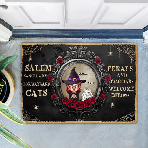 View full detailsPersonalized Halloween Cat Mom Doormat - Up to 4 Cats - Halloween Gift For Cat Lovers/Wiccan Decor/Pagan Decor - Salem Sanctuary For Wayward Cats