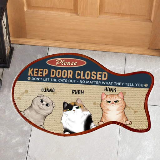 View full detailsPersonalized Cat Custom Shape Doormat - Gift Idea For Cat Lover, Cat Owner with up to 3 Cats - Please Keep Door Closed Don't Let The Cats Out