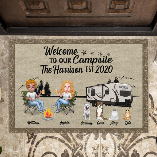 View full detailsPersonalized Camping Doormat - Up to 4 People and 2 Pets - Gift Idea For Couple/Camping/Dog/Cat Lovers - Welcome To Our Campsite
