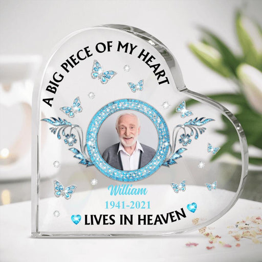 Personalized Dad Memorial Heart Acrylic Plaque - Memorial Gift Idea - A Big Piece Of My Heart Live In Heaven