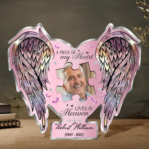 Personalized Memorial Dad Acrylic Plaque - Upload Photo - Memorial Gift Idea For Father's Day - A Piece Of My Heart Lives In Heaven