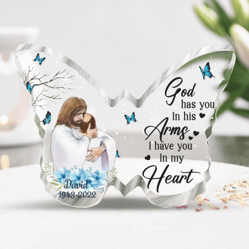 View full detailsCustom Personalized Memorial Family Acrylic Plaque - Memorial Gift Idea For Family Member - God Has You In His Arms I Have You In My Heart