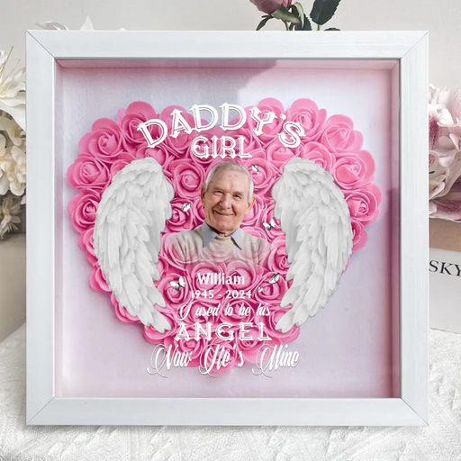 Personalized Memorial Dad Photo Flower Shadow Box - Memorial Gift Idea For Father's Day - Daddy's Girl I Used To Be His Angel Now He's Mine