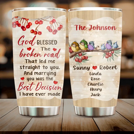 View full detailsPersonalized Memorial Family Tumbler - Gift Idea For Family - Up to 5 Kids - God Blessed The Broken Road