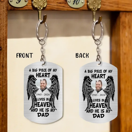 View full detailsPersonalized Memorial Dad/Mom Aluminum Keychain - Memorial Gift Idea For Family - A Big Piece Of My Heart Lives In Heaven And He Is My Dad
