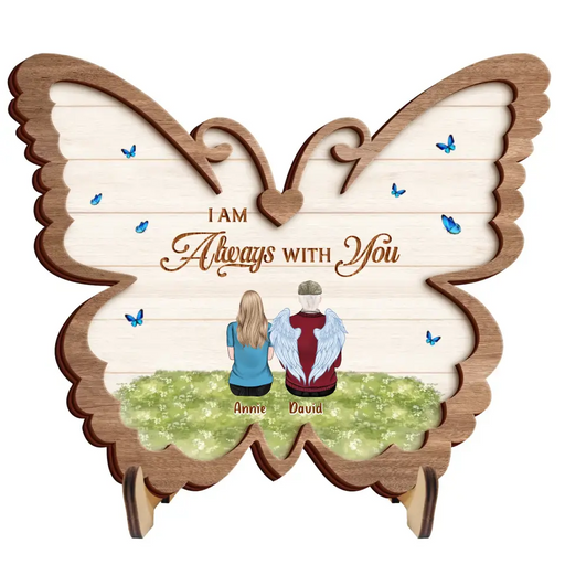 Personalized Memorial Family Butterfly Wooden Art - Up to 6 People And 2 Pets - Memorial Gift Idea Family Member - I Am Always With You