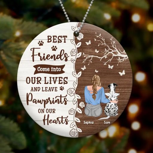 View full detailsPersonalized Memorial Dog Circle Wooden Ornament - Up to 3 Pets - Memorial Gift Idea For Dog/Cat Lover - Best Friends Come Into Our Lives And Leave Paw Prints On Our Hearts