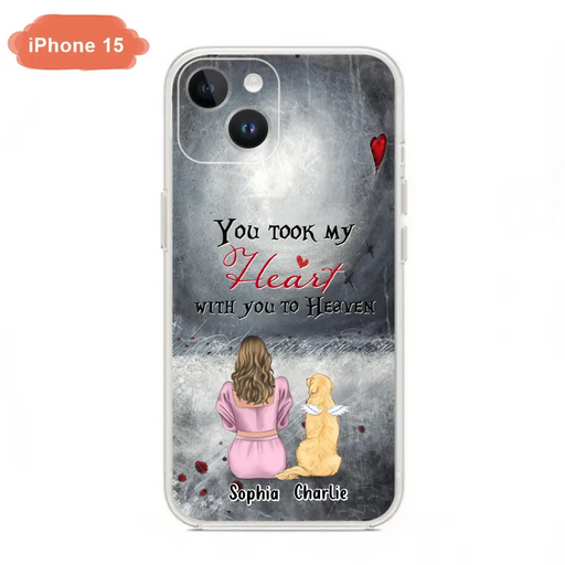 View full detailsCustom Personalized Memorial Dog Mom Phone Case - Upto 5 Dogs - Memorial Gift Idea for Dog Lovers - You Took My Heart With You To Heaven - Case For iPhone And Samsung
