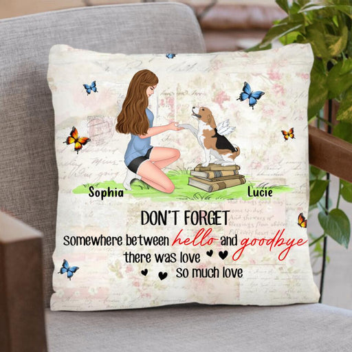 View full detailsCustom Personalized Memorial Dog Mom Pillow Cover - Memorial Gift For Dog Mom/ Dog Lovers - Don't Forget Somewhere Between Hello And Goodbye, There Was Love So Much Love