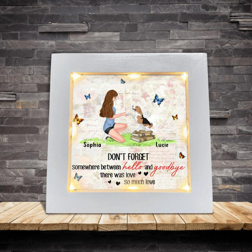 View full detailsCustom Personalized Memorial Dog Mom Frame With Led - Memorial Gift For Dog Mom/ Dog Lovers - Don't Forget Somewhere Between Hello And Goodbye, There Was Love So Much Love