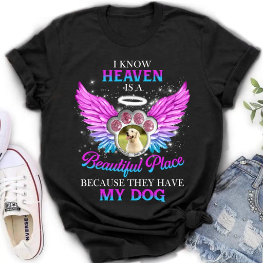 View full detailsPersonalized Memorial Dog Photo Shirt/Hoodie - Memorial Gift For Dog Lover - I Know Heaven Is A Beautiful Place Because They Have My Dog