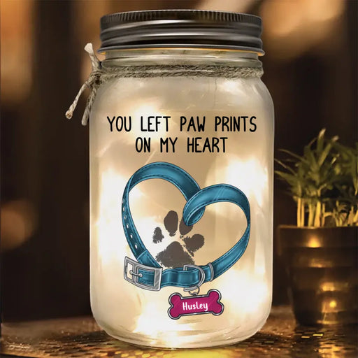 View full detailsPersonalized Memorial Dog Mason Jar Light - Memorial Gift Idea for Mother's Day/Father's Day - You Left Paw Prints On My Heart
