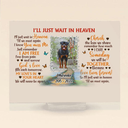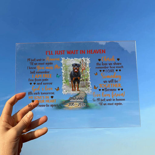 View full detailsPersonalized Dog Memorial Acrylic Plaque - Custom Photo Dog - Loss Gifts for Dog Owners - I'll Just Wait In Heaven
