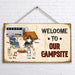 Personalized Couple Camping Door Sign - Couple With Up to 4 Pets - Gift Idea For Camping/Dog/Cat Lover - Welcome To Our Campsite