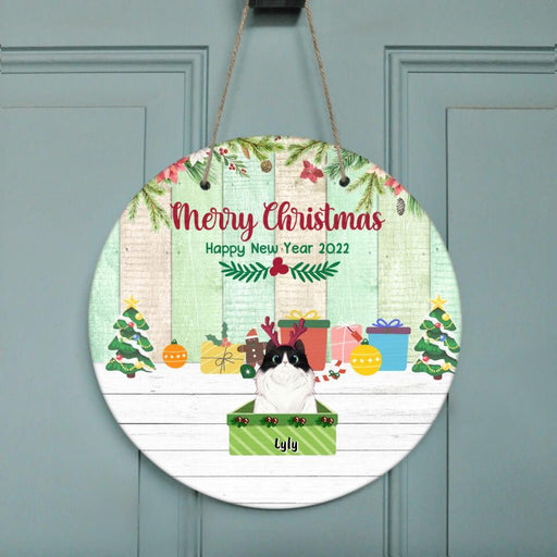View full detailsPersonalized Cat Box Circle Door Sign - Gift For Cat Lovers With Up To 3 Cats - Merry Christmas