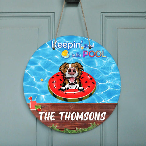 View full detailsPersonalized Pool Door Sign - Family Name with up to 4 Dogs - Keepin' It Cool In The Pool - 4UJYU0