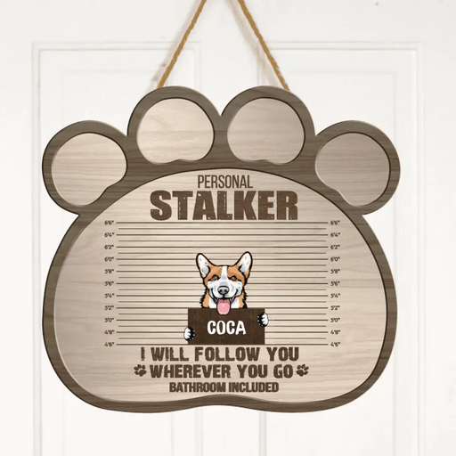 View full detailsPersonalized Personal Stalker Dog Door Sign - Up to 5 Dogs - Gift Idea For Dog Lover - Personal Stalkers We Will Follow You Wherever You Go Bathroom Included