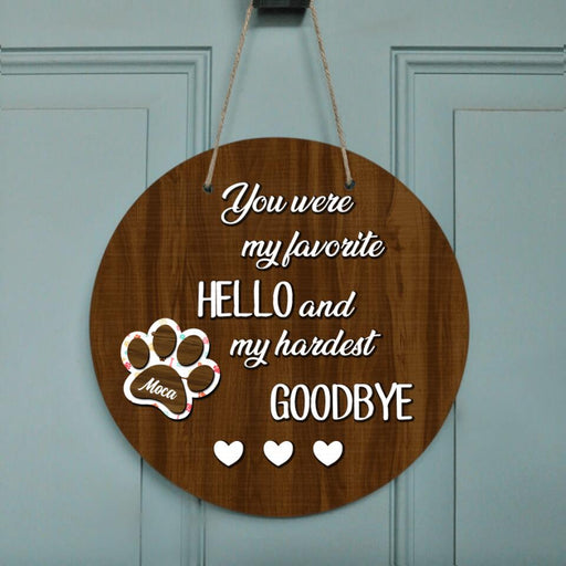 View full detailsPersonalized Memorial Pet Door Sign - Gift Idea For Dog Lover - Up to 5 Dogs - You Were My Favorite Hello And My Hardest Goodbye