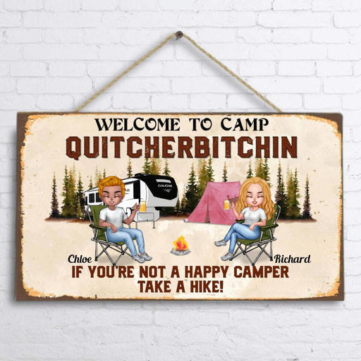 View full detailsCustom Personalized Welcome To Camp Quitcherbitchin Door Sign - Gift Idea For Camping Lovers - Up To 6 People - If You're Not A Happy Camper Take A Hike!