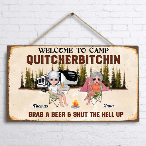 View full detailsCustom Personalized Welcome To Camp Quitcherbitchin Door Sign - Gift Idea For Friends - Up To 7 People - Grab A Beer And Shut The Hell Up