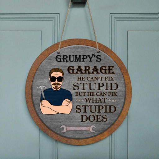 View full detailsPersonalized Garage Circle Door Sign - Gift Idea For Fixing Lovers - Grumpy's Garage He Can't Fix Stupid But He Can Fix What Stupid Does
