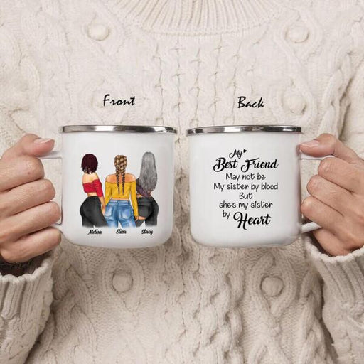 View full detailsPersonalized Friend Enamel Mug - 2 Besties - Gift Idea For Besties - She's My Sister By Heart