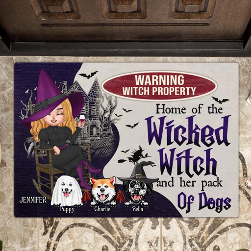 View full detailsCustom Personalized Warrning Witch Property Doormat - Halloween Gift Idea For Witch/ Dog Lovers With Up To 3 Dogs - Home Of The Wicked Witch And Her Pack Of Dogs