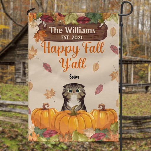 View full detailsPersonalized Fall Y'all Flag Sign - Gift For Cat Lovers with up to 3 Cats - Happy Fall Y'all