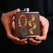 • Flasks are created from durable and rust proof stainless steel. The flask is wrapped in a vegan leather that is both scratch resistant and water resistant. Spot clean with a damp cloth or rubbing alcohol.