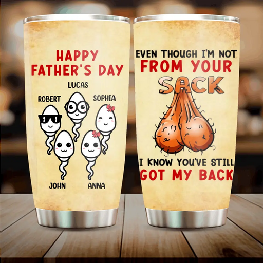 View full detailsPersonalized Step Father Tumbler - Father's Day Gift For Step Father - Even Though I'm Not From Your Sack I Know You've Still Got My Back