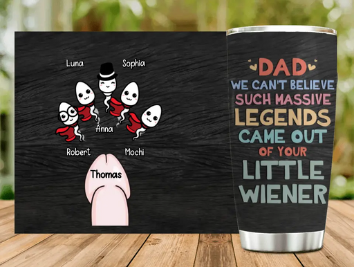 View full detailsPersonalized Sperms Tumbler - Gift Idea For Father's Day From Kids - Up to 5 Sperms - We Can't Believe Such Massive Legends Came Out Of Your Little Wiener