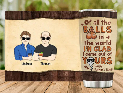 View full detailsPersonalized Happy Father's Day Tumbler - Up to 4 Kids - Gift Idea For Father's Day - Of All The Balls In The World I'm Glad I Came Out Of Yours