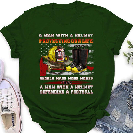 View full detailsPersonalized Firefighter Shirt/Hoodie - Gift Idea For Firefighter, Father's Day - A Man With A Helmet Protecting Our Life