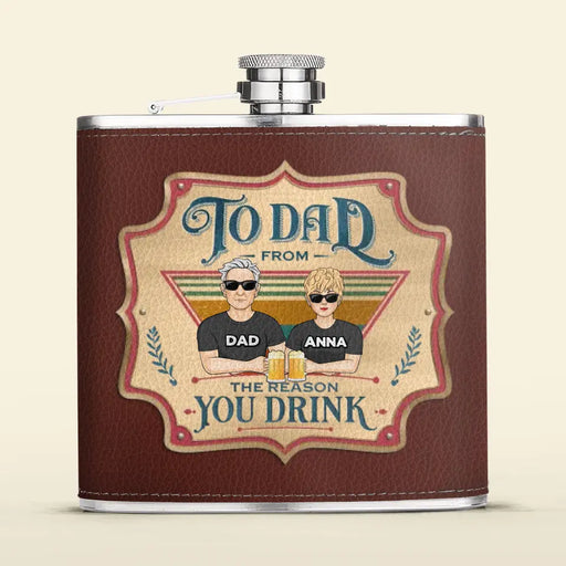 View full detailsPersonalized Dear Dad Leather Flask - Father's Day Gift Idea - Dad With Up to 4 Children - To Dad From The Reason You Drink