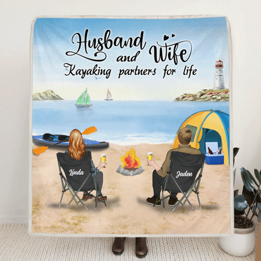 View full detailsPersonalized Kayak Camping Quilt/Fleece Blanket - Couple With Up to 3 Dogs - This Is Our Happy Place