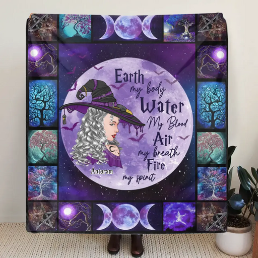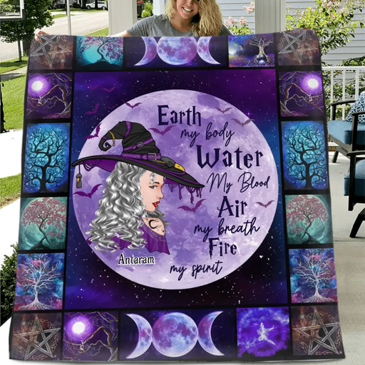 View full detailsPersonalized Witch Quilt/Fleece Throw Blanket - Gift Idea For Witch Lover - Earth My Body Water My Blood Air My Breath Fire My Spirit