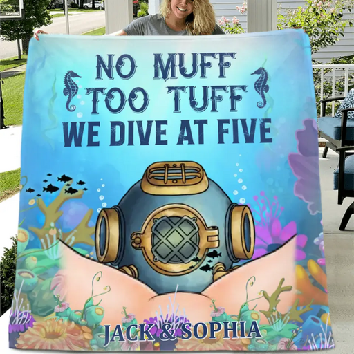 View full detailsPersonalized Funny Couple Fleece Throw Blanket/Quilt - Gift Idea For Couple/Him/Her/Valentine's Day - No Muff Too Tuff We Dive At Five