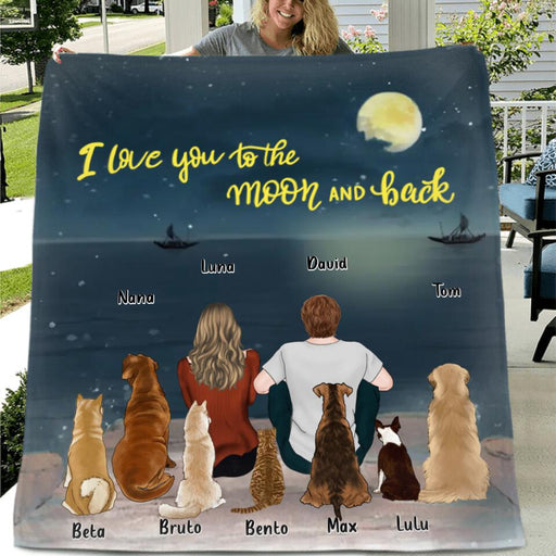 View full detailsPersonalized Pet Dad Pet Mom Quilt/Fleece Blanket - Up to 7 Pets - I Love You To The Moon and Back