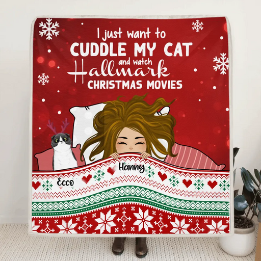 View full detailsPersonalized Christmas Sleeping With Pets Quilt/Fleece Blanket - Girl With Up to 4 Pets - Christmas Gift For Cat/Dog Lover - I Just Want To Cuddle My Pets