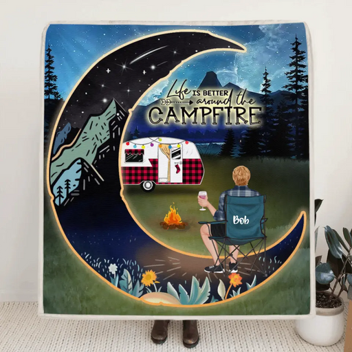 View full detailsPersonalized Night Camping Moon Quilt/Fleece Blanket - Man/Woman/Couple/ Parents With Up to 3 Kids And 5 Pets - Gift For Camping Lover - Life Is Better Around The Camfire