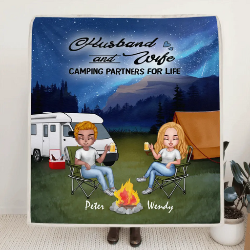 View full detailsPersonalized Night Camping Chibi Quilt/Fleece Blanket - Couple With Up to 3 Dogs - Gift Idea For Dog/Camping Lover/Couple - Husband And Wife Camping Partners For Life
