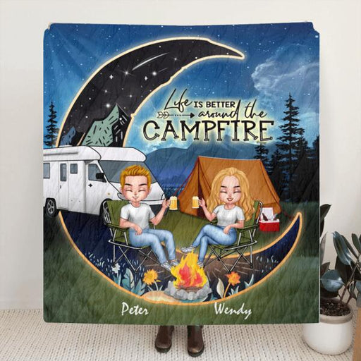 View full detailsPersonalized Autumn Camping Quilt/Fleece Throw Blanket - Couple/Parents With Up to 3 Kids And 4 Pets - Gift For Camping Lovers - Life Is Better Around The Campfire