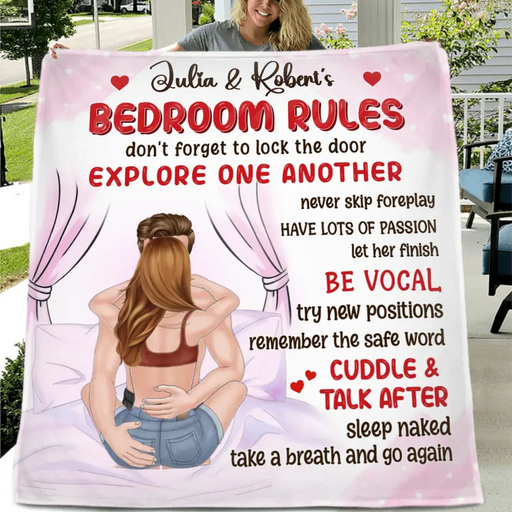 View full detailsPersonalized Couple Fleece Throw Blanket & Quilt - Gift Idea For Couple - Bedroom Rules Don't Forget To Lock The Door
