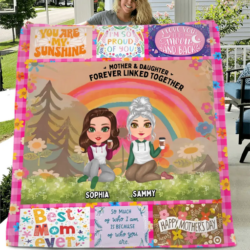 View full detailsPersonalized Mom & Daughter Quilt/Fleece Throw Blanket - Mother's Day Gift Idea To Mom - Mother & Daughter Forever Linked Together